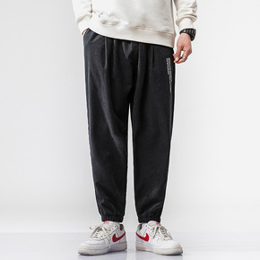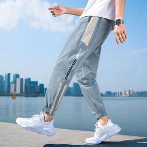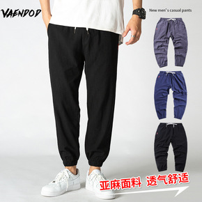 2021年运动裤男夏季束脚裤男士休闲裤男棉麻九分男...