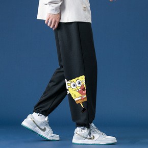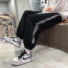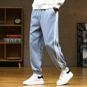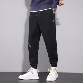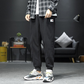 2021秋冬新款男士长裤厚款韩版潮流时尚潮牌黑色靓...
