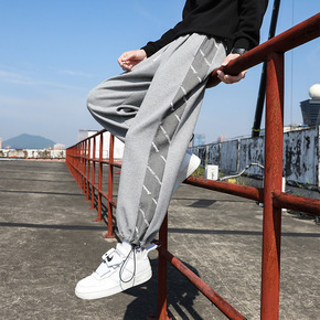 休闲裤男秋季新款青少年韩版潮灰色卫裤学生宽松束脚运...