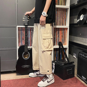 美式排扣休闲裤男高街网红潮牌宽松拖地直筒裤薄款百搭...