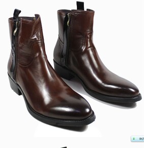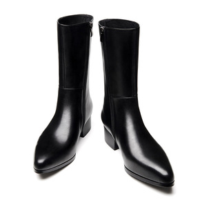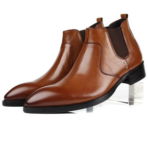 男尖头皮靴拉链复古英伦潮流男靴子高帮休闲皮鞋切尔西...