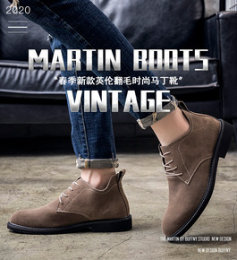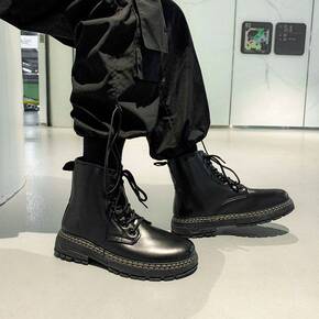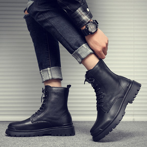 男士冬季新款复古工装靴潮流百搭中帮马丁靴男鞋英伦风...