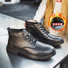 冬季马丁靴男英伦风工装靴黑色高帮皮靴潮流百搭加绒橡...