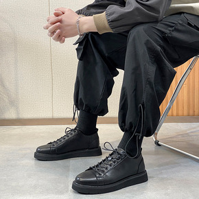秋冬新款2019男士高帮鞋英伦男靴套脚商务休闲皮鞋...