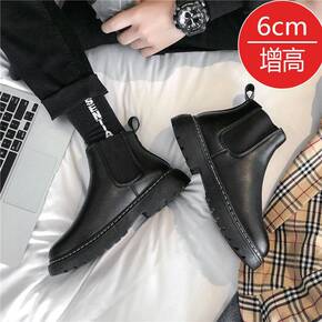 黑色皮靴男秋冬季英伦风潮流高帮切尔西靴韩版学生增高...