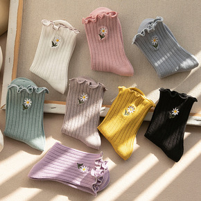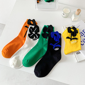 21秋冬爱德纶女士中筒袜精梳棉吸汗无骨日系多色花朵...