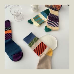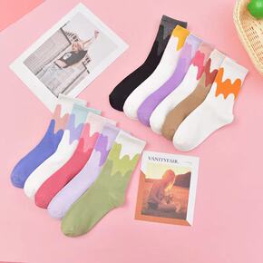 袜子女奶油冰淇淋渐变色中筒棉袜 春秋冬街头百搭男女...