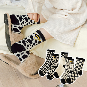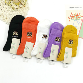 秋冬韩版卡通可爱小熊刺绣女款日系ins潮流中筒袜女...