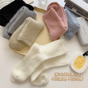 毛绒长袜子女中筒袜秋冬季加厚保暖纯色加绒毛毛ins...