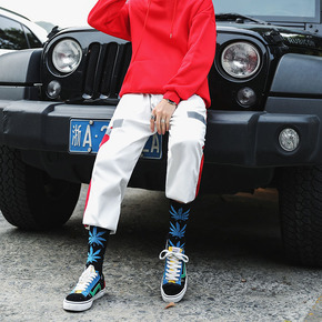 春秋冬新款袜子 男女士中筒袜树叶潮袜厚棉嘻哈长袜批...