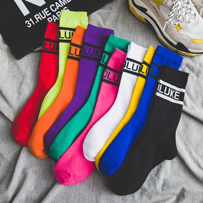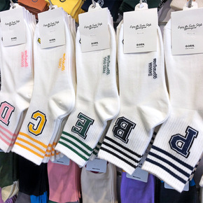秋冬新款女袜全棉袜子中筒潮袜字母长袜韩版ins日系...