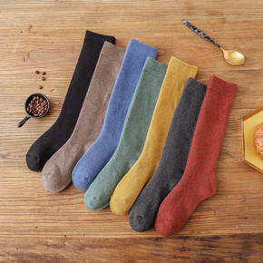 小腿袜女秋冬季日系韩版高筒长筒袜加厚毛圈保暖长袜女...