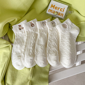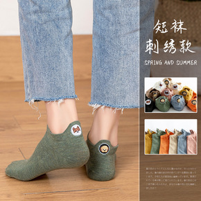 厂家批发2021夏季新款女袜日系卡通刺绣船袜 袜子...