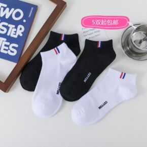 白色袜子男春夏季短袜浅口绦棉运动潮流纯色弹力短筒船...