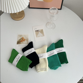 小雏菊袜子棉女中筒 纯色条纹刺绣木耳边堆堆袜 秋季...