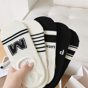 袜子女 夏季薄款后跟防滑硅胶字母隐形袜黑白系INS...