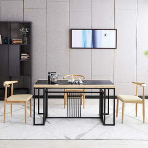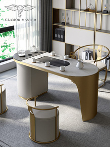 岩板书桌家用简约火烧石现代功夫茶桌椅组合轻奢书桌茶...