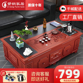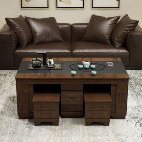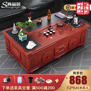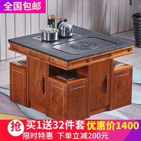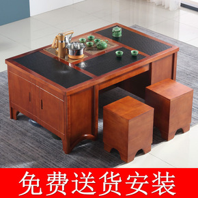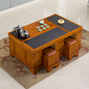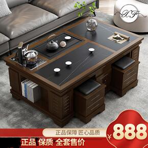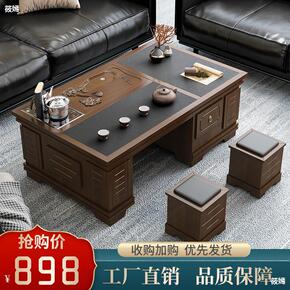 火烧石实木茶几茶具套装一体办公室多功能带电磁功夫泡...