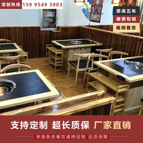 新中式办公室泡茶桌火烧石功夫茶几大理石茶桌椅组合岩...