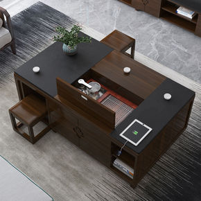 火烧石电动升降功夫茶几客厅带茶具中式办公一体实木多...