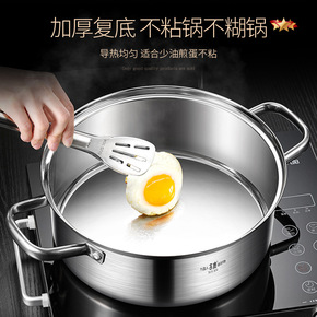 双耳锅具家用蒸锅小火锅不锈钢锅电磁炉锅小汤锅加厚火...