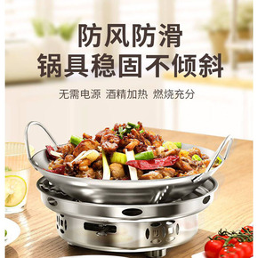 加厚不锈钢小火锅干锅锅仔家用固体液体酒精炉便携学生...