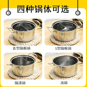 不锈钢小火锅304汤锅复底加厚火锅家用盆锅电磁炉专...