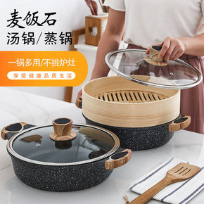麦饭石汤锅不粘锅家用燃气电磁炉火锅专用锅双耳煮锅两...