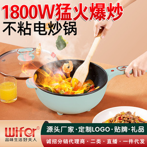 电煮锅宿舍插电电炒锅炒菜煮饭电热锅火锅智能家用小电...