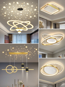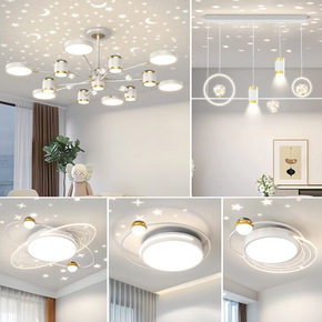 2022年新款轻奢客厅吊灯星空投影大厅灯简约现代餐...