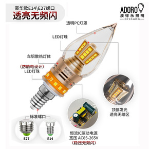 led蜡烛灯泡宽压85-265v恒流无频闪不伤眼睛...