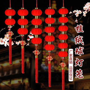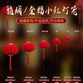 小灯笼 装饰植绒挂饰盆景阳台新年节日庆装饰圆形大红...