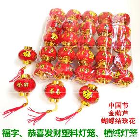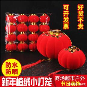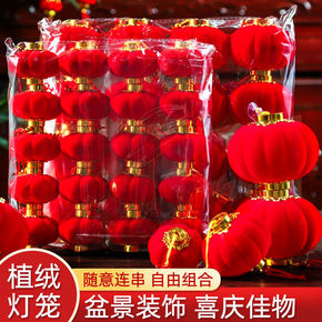 植绒塑料红色小灯笼过年元旦喜庆日挂串盆景植物树上吊...