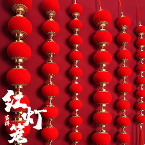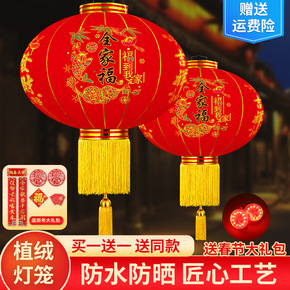 大红灯笼挂饰乔迁户外阳台一对植绒灯笼灯防水中式宫灯...