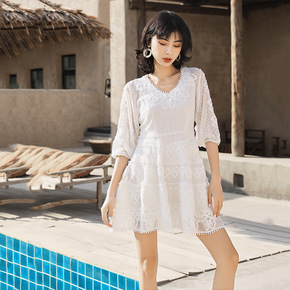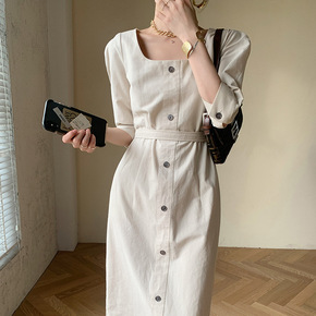 福利款不退换潮时尚气质连衣裙 自然姿态白色中长款收...