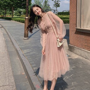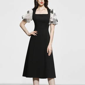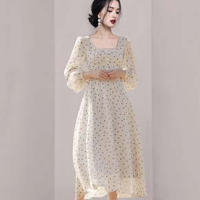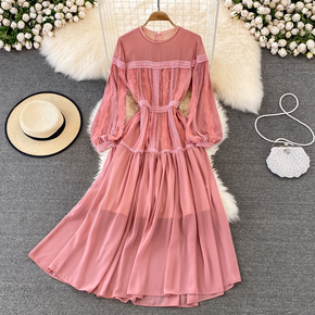 蕾丝连衣裙子2022新款女装超仙气质收腰女神范灯笼...