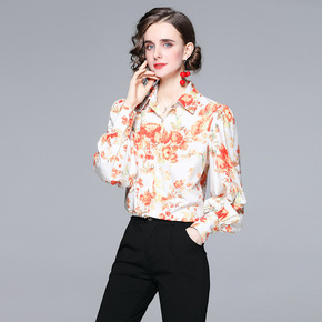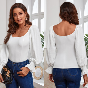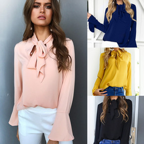 气质设计感灯笼长袖衬衫女 现货 跨境亚马逊秋季气质...
