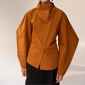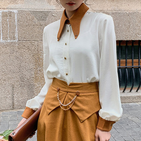 [含那]设计感大尖领衬衫女2021初冬新款撞色长袖...
