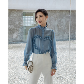 重磅真丝衬衫女2021秋季新款天蚕锻网纱半透明蝴蝶...