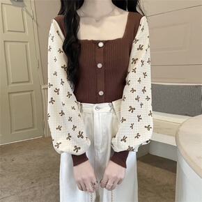 法式方领长袖针织衫女春季2022年新款设计感时尚洋...