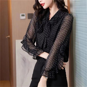 雪纺衬衫女士春秋季2022年新款黑色高端时尚洋气上...