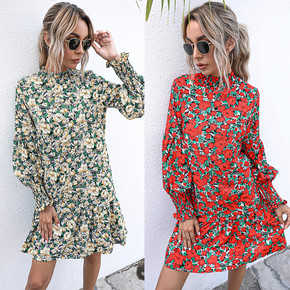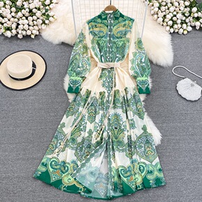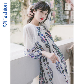 女装商场同款海边云南大理度假雪纺印花长裙灯笼袖旅拍...