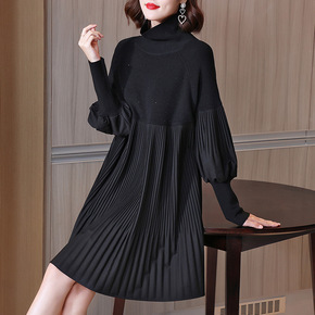 妈妈秋装针织长袖连衣裙小个子时尚高领宽松胖mm显瘦...
