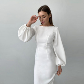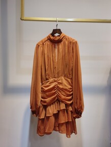 2022秋季新款 气质优雅 半高领灯笼泡泡袖褶皱设...