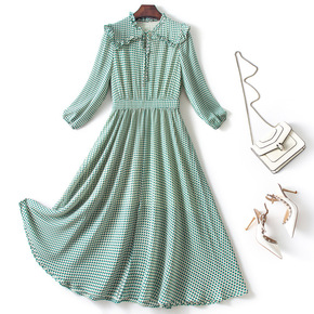 小香风名媛连衣裙2022早秋新款大牌范洋气翻领灯笼...