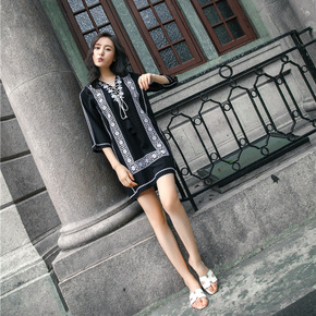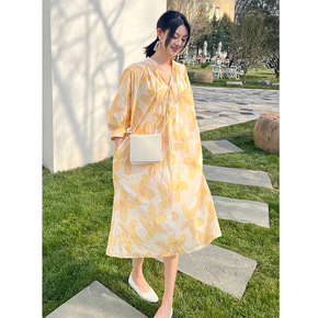 2022夏季新品明星同款清新花卉七分袖碎花连衣裙女...