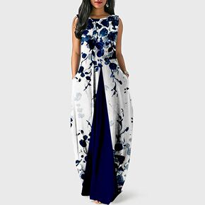 2022新款跨境亚马逊女装无袖圆领连衣裙大码印花高...