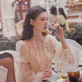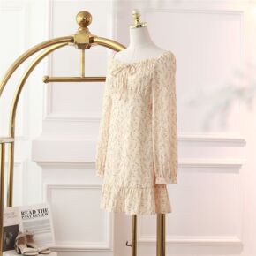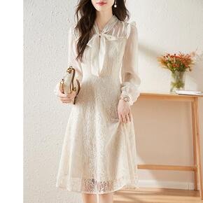 设计感超仙女神范蕾丝镶钻连衣裙2022夏季新款淡杏...