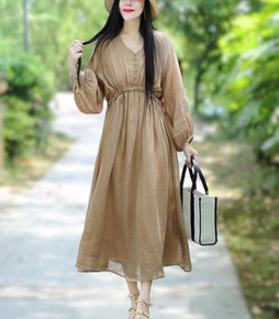 2022夏季新款 气质通勤透气飘逸苎麻连衣裙 有里...
