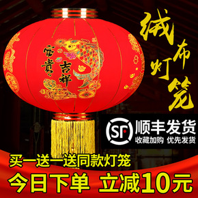 大红植绒春节新年绸布灯笼户外防水阳台装饰结婚节日广...